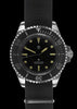 These diver's watches are a modern remake of our 1980s model, specifically crafted for a U.S. contractor who secured a large sale to one of their clients. The watch features a robust stainless steel case and is equipped with a high-performance automatic 24-jewel self-winding movement. Several upgrades have been made to the original design, including a shatter and scratch-resistant sapphire crystal and an increased water resistance rating. The dial is unbranded (referred to in the military as sterile), giving the watch a very clean and uncluttered appearance.